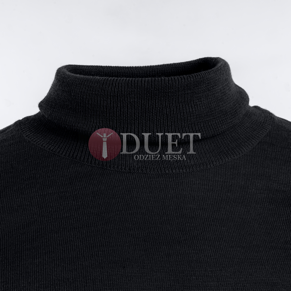 Klasyczny golf męski firmy Tris Line w kolorze czarnym. Miła w dotyku a także elastyczna dzianina zapewnia komfort użytkowania. Lekkie ściągacze u dołu i przy rękawach. Golf jest doskonałym wyborem na mroźne dni, można założyć go pod marynarkę.